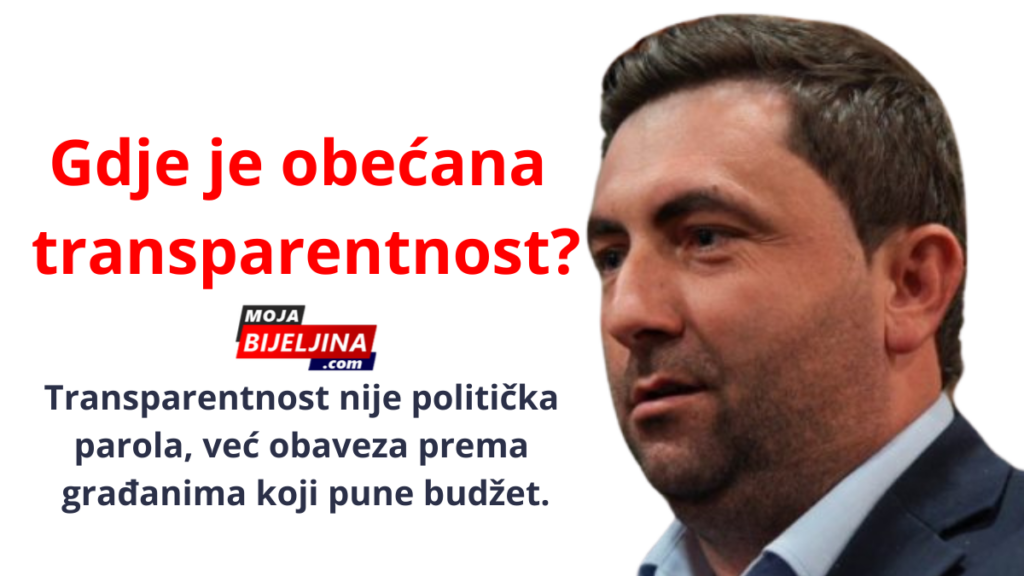 Iako je javnosti ranije najavljeno transparentno trošenje novca građana Bijeljine, obećanje do danas nije ispunjeno. Građani imaju pravo da znaju kako se troši budžetski novac, kome se uplaćuju sredstva i po kom osnovu. Upravo su dnevne transakcije jedan od osnovnih mehanizama javne kontrole rada lokalne uprave.