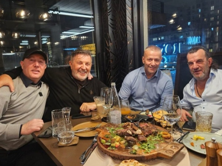 Na večeri, nasmijani, pozirali su u društvu još jednog pjevača, Šerifa Konjevića, i još jedne oosbe.