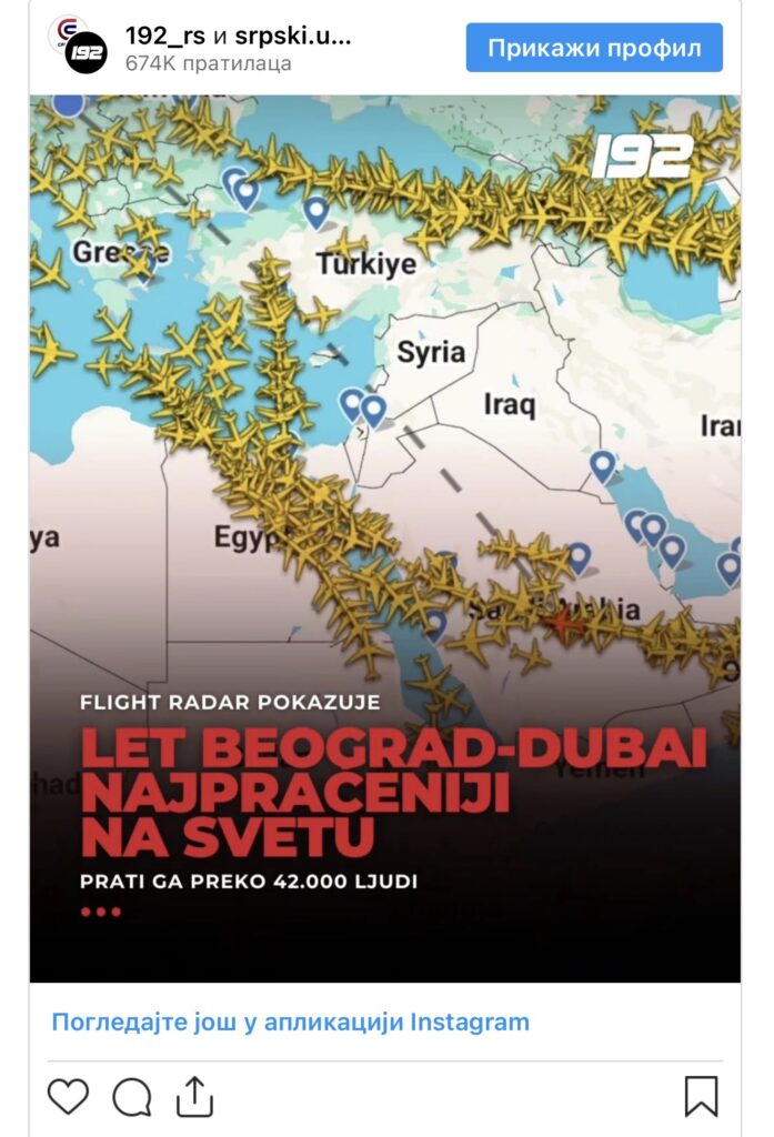 Skoro 42.000 ljudi pratilo je u jednom momentu ovaj let, piše Telegraf.