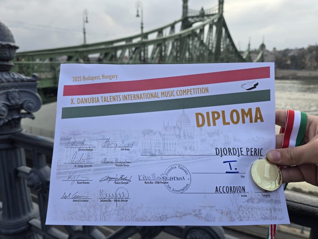 Na jubilarnom 10. izdanju prestižnog međunarodnog festivala „Danubia Talents“, održanom od 5. do 9. oktobra u Budimpešti, koji okuplja mlade muzičare svih instrumenata iz brojnih evropskih zemalja, *