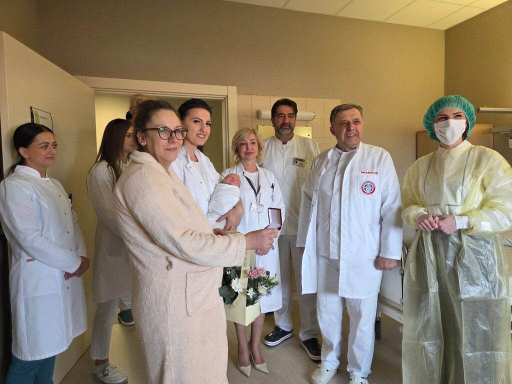 U prisustvu vršioca dužnosti direktora Bolnice „Sveti Vračevi“ prim. dr Mikajla Lazića, pomoćnika direktora prim. dr Nele Mitrović, kao i osoblja Odjeljenja za ginekologiju i akušerstvo i Odjeljenja pedijatrije, dukat je uručen maloj Nađi Gajić – prvoj bebi rođenoj u 2026. godini.