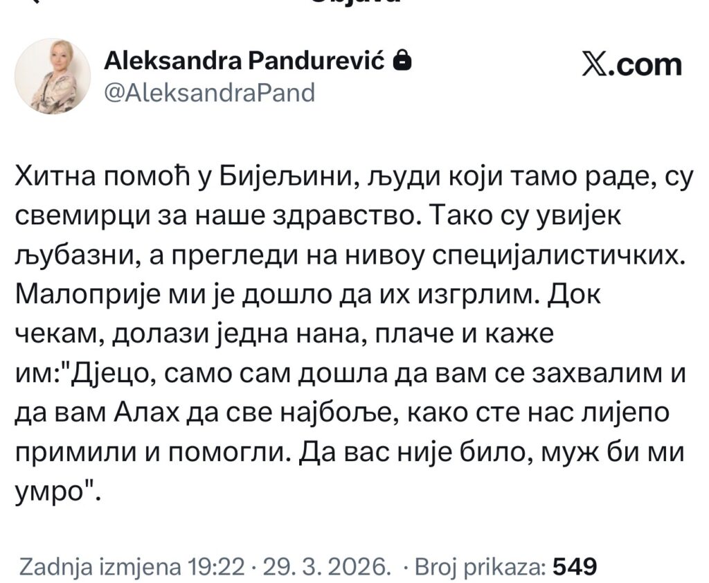 BIJELJINA – Na društvenim mrežama pojavila se emotivna objava koja je brzo privukla pažnju javnosti, a odnosi se na rad medicinskog osoblja Hitne pomoći u Bijeljini.