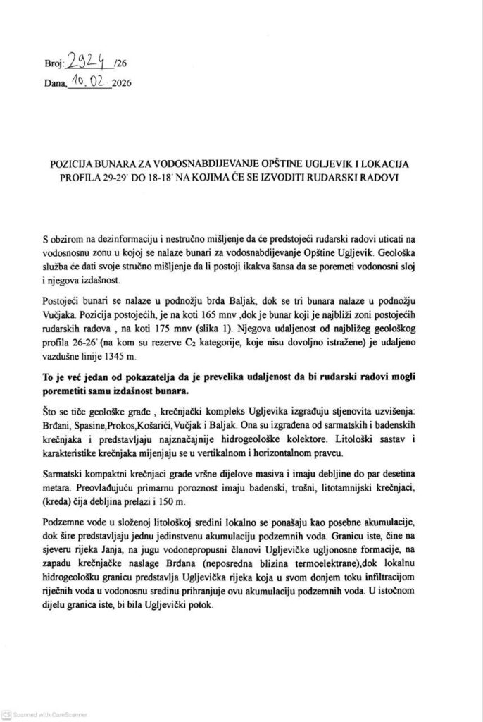 Prema njihovim riječima, relevantni bunari se nalaze više od 1000 metara od mjesta gdje se planiraju radovi, što je prevelika udaljenost da bi moglo doći do bilo kakvog poremećaja podzemnih voda. Najbliži bunar udaljen je oko 1.345 metara vazdušnom linijom od rudarskih zona.
