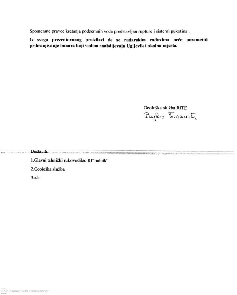 “To je već jedan od pokazatelja da je prevelika udaljenost da bi rudarski radovi mogli poremetiti samu izdašnost bunara”, navodi se u stručnom mišljenju Geološke službe RiTE Ugljevik.