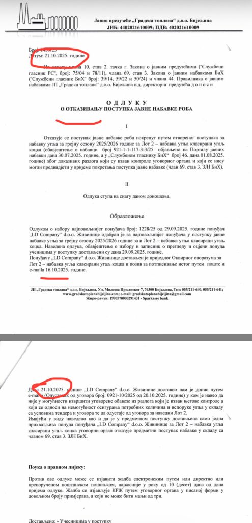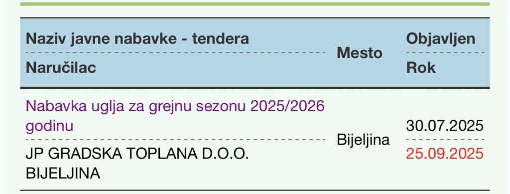 Kako je vidljivo u u dokumentaciji, kao i obično kasno je raspisana Javna nabavka za ugalj.