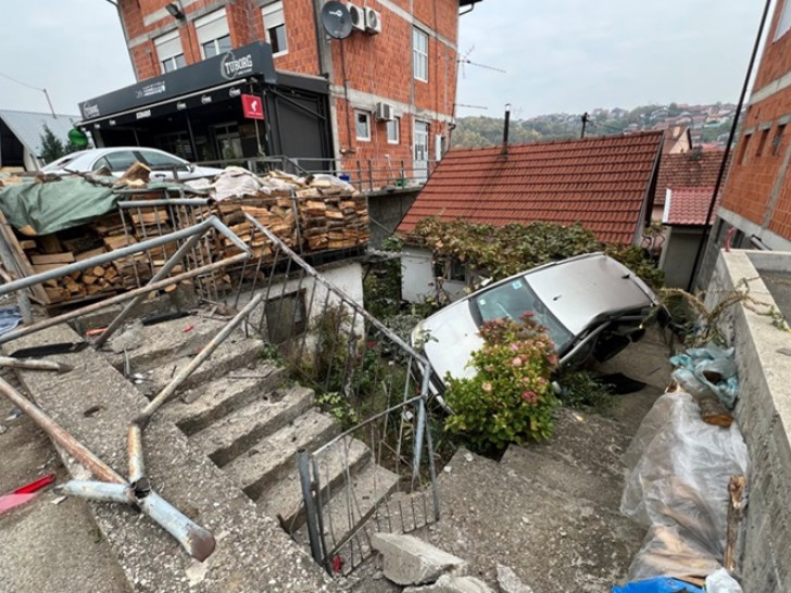 Jedan automobil nakon sudara sletio je s kolovoza, probio metalnu ogradu i završio u dvorištu porodične kuće, dok je drugo vozilo ostalo na trotoaru s vidljivim oštećenjima na prednjem dijelu.