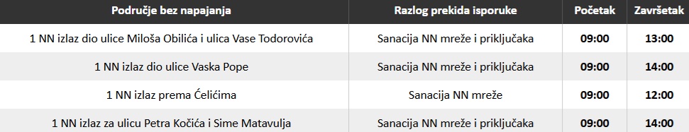 PLANIRANA ISKLJUČENJA ELEKTRIČNE ENERGIJE ZA PONEDJELJAK 09.03.2026. GODINE