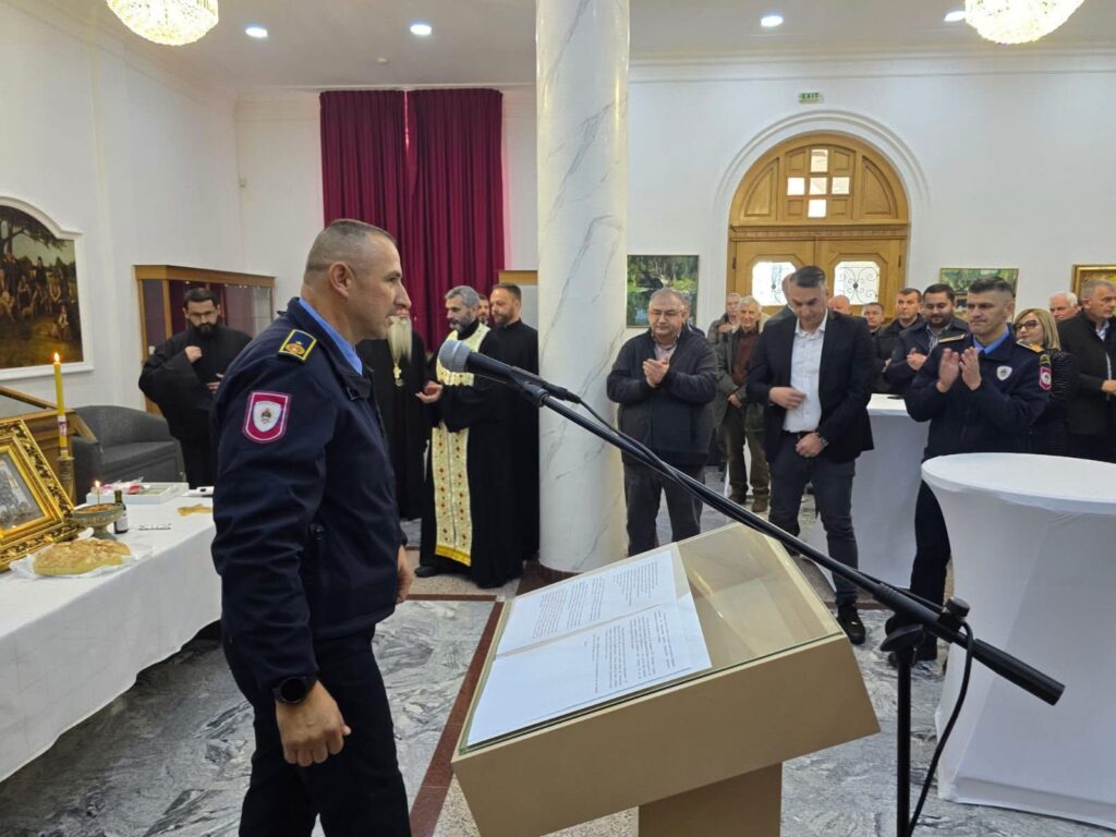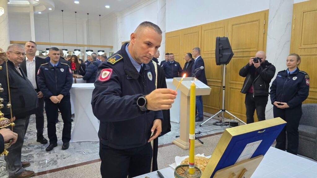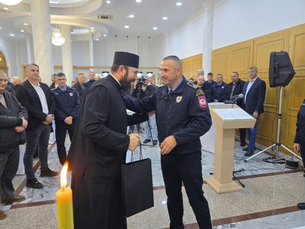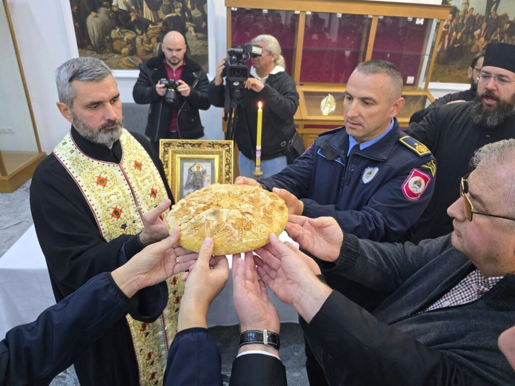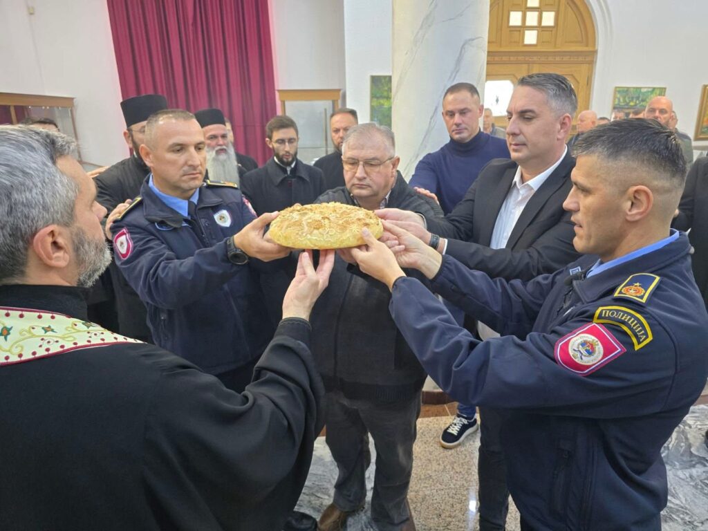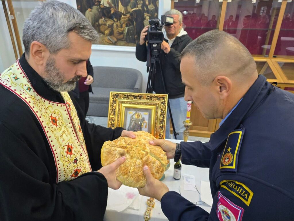 Obeležavanje krsne slave Ministarstva unutrašnjih poslova (MUP), Svetog arhangela Mihaila, započeto je osvećenjem slavskih darova i lomljenjem slavskog kolača u Eparhijskom kulturnom centru.