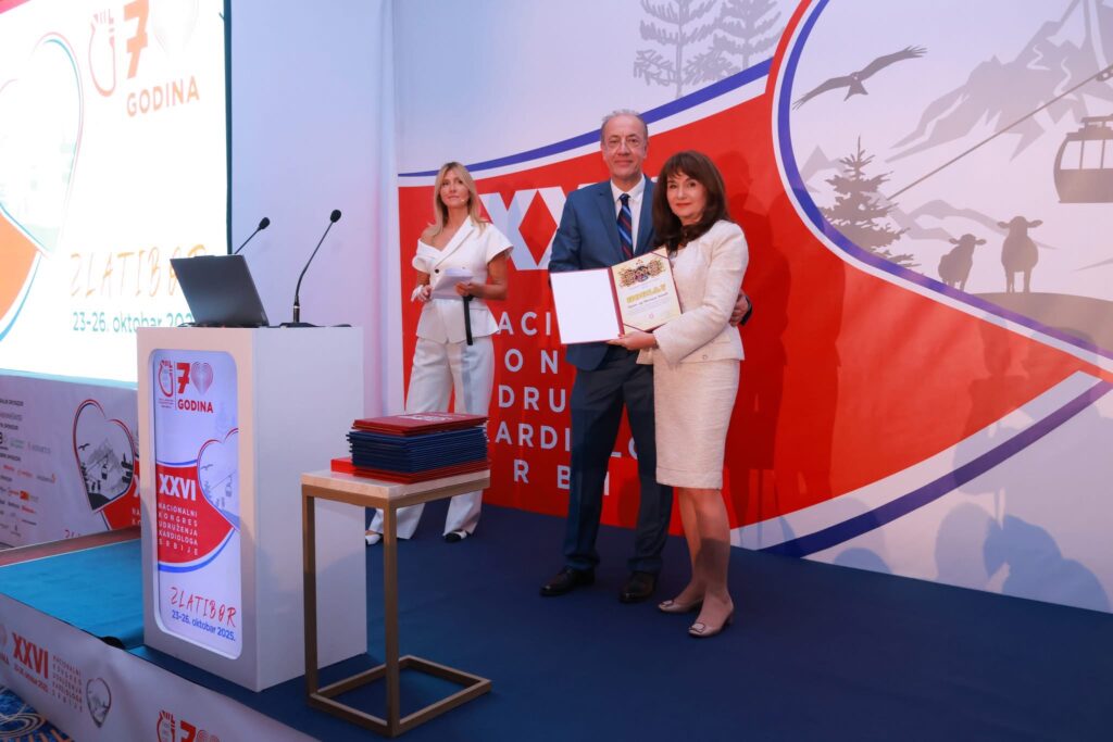 Ovom prilikom Udruženje kardiologa Srbije obilježava 70 godina svog rada, a tim povodom prim. dr Milici Lovrić, šefu Odsjeka za kardiologiju naše zdravstvene ustanove, uručeno je prestižno priznanje „Povelja Udruženja kardiologa Srbije“ za izuzetan doprinos razvoju kardiologije, unapređenje obrazovanja i značajna naučno-istraživačka dostignuća u oblasti kardiovaskularne medicine.