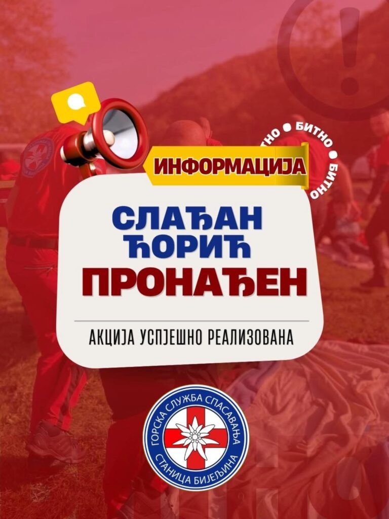 Nakon nekoliko dana potrage, nestali Slađan Ćorič je pronađen zahvaljujući dojavi savjesnih građana koji su prijavili da su ga uočili na određenoj lokaciji.