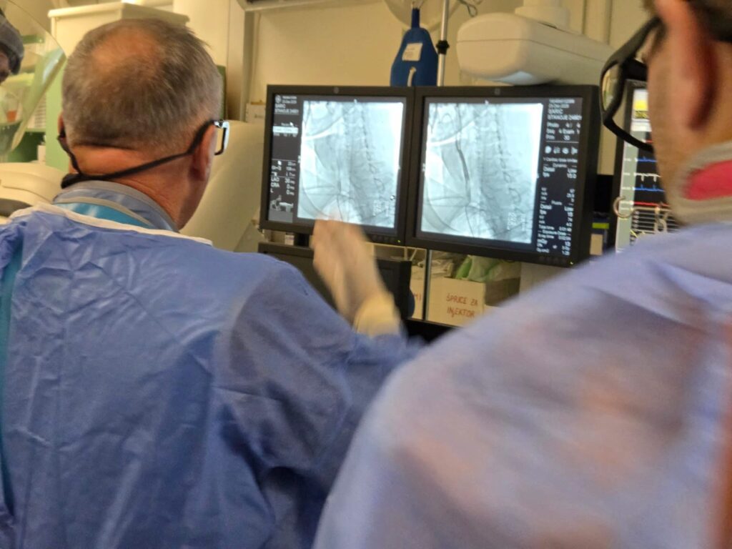 Tokom dva dana u angio sali izvedene su i izuzetno složene intervencije na koronarnim arterijama srca, uključujući perkutane intervencije na hronično – potpuno zapušenim krvnim sudovima srca i intervencije na tzv. glavnom stablu (left main) koja je glavna artrija srca i čije liječenje takođe spada u veoma rizične zahvate u interventnoj kardiologiji.
