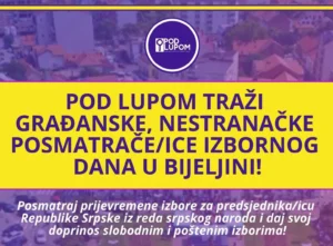 Postani čuvar poštenih izbora – priključi se Koaliciji ‘Pod lupom’ 30 Oktobra, 2025 U okviru Koalicije za slobodne i poštene izbore „Pod lupom“, Omladinski centar Vermont objavio je javni poziv svim građanima da…