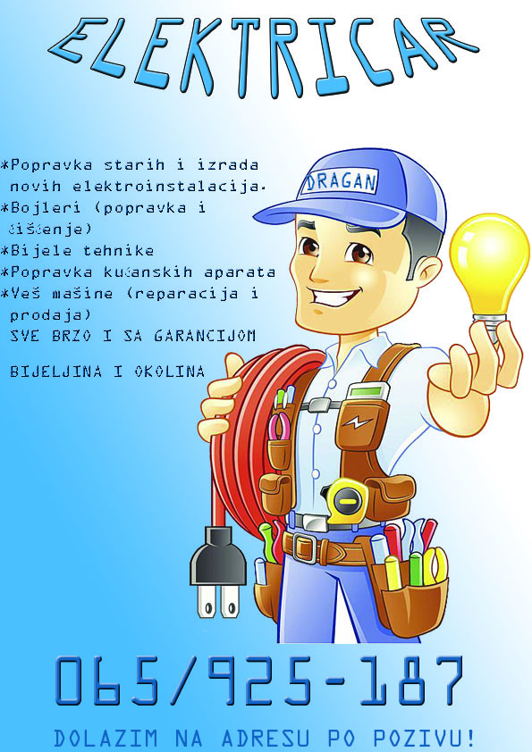 -Popravka starih i izrada novih elektroinstalacija. -Bojleri (popravka i čišćenje) -Bijele tehnike -Popravka kućanskih aparata -Veš mašine (reparacija i prodaja) SVE BRZO I SA GARANCIJOM 065/925-187 Kontakt telefon: +38765 925 187